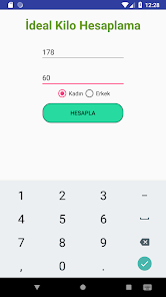체질량 지수(BMI)의 이상적인 비율은 여성에게는 21, 남성에게는 24로 설정되어 있습니다. 앱을 사용하려면 단순히 성별을 선택하고 키(센티미터 단위)와 몸무게(킬로그램 단위)를 입력하면 됩니다. 그런 다음, 결과를 얻기 위해 "계산" 버튼을 누르세요.